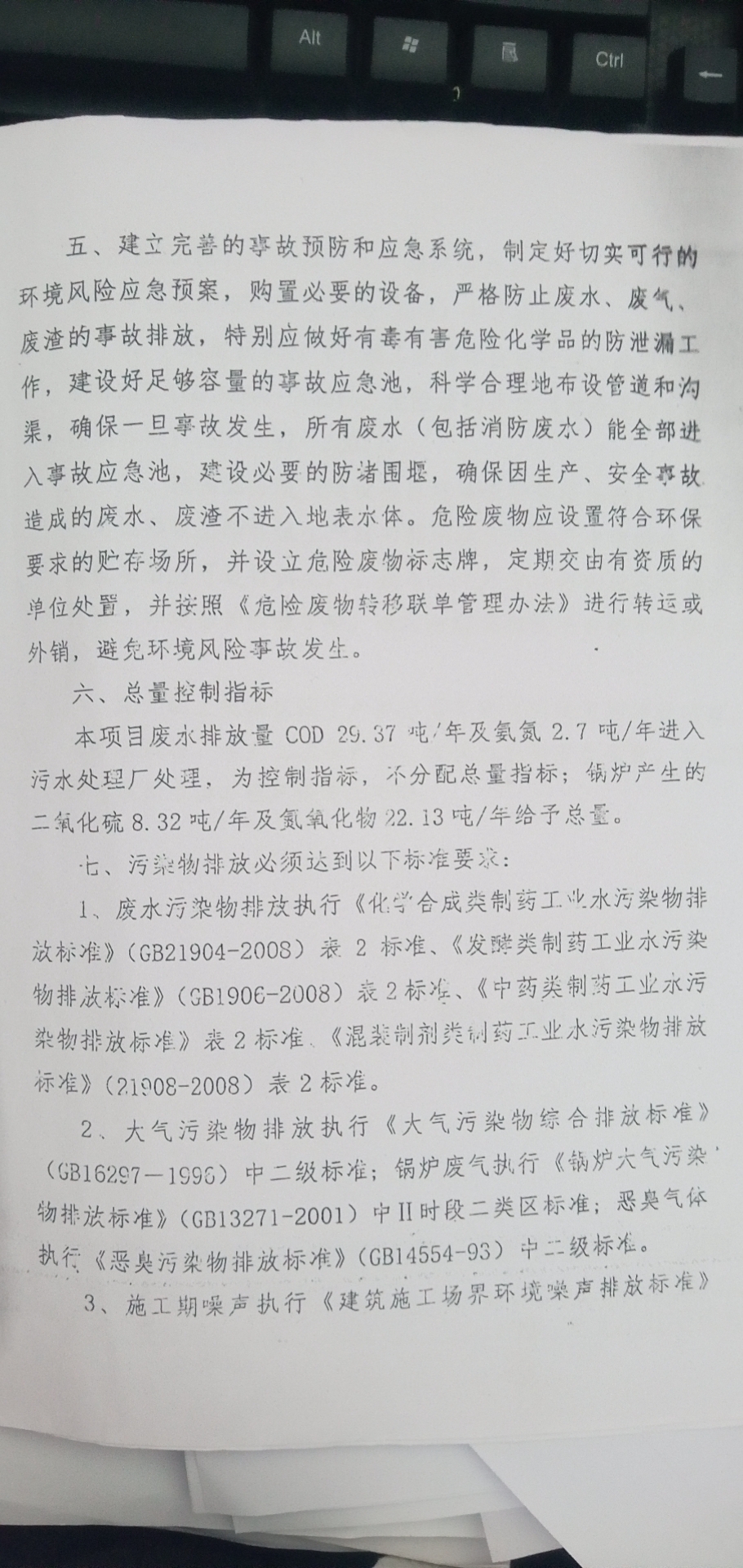 州區對江西新贛江藥業股份有限公司環評報告的批復